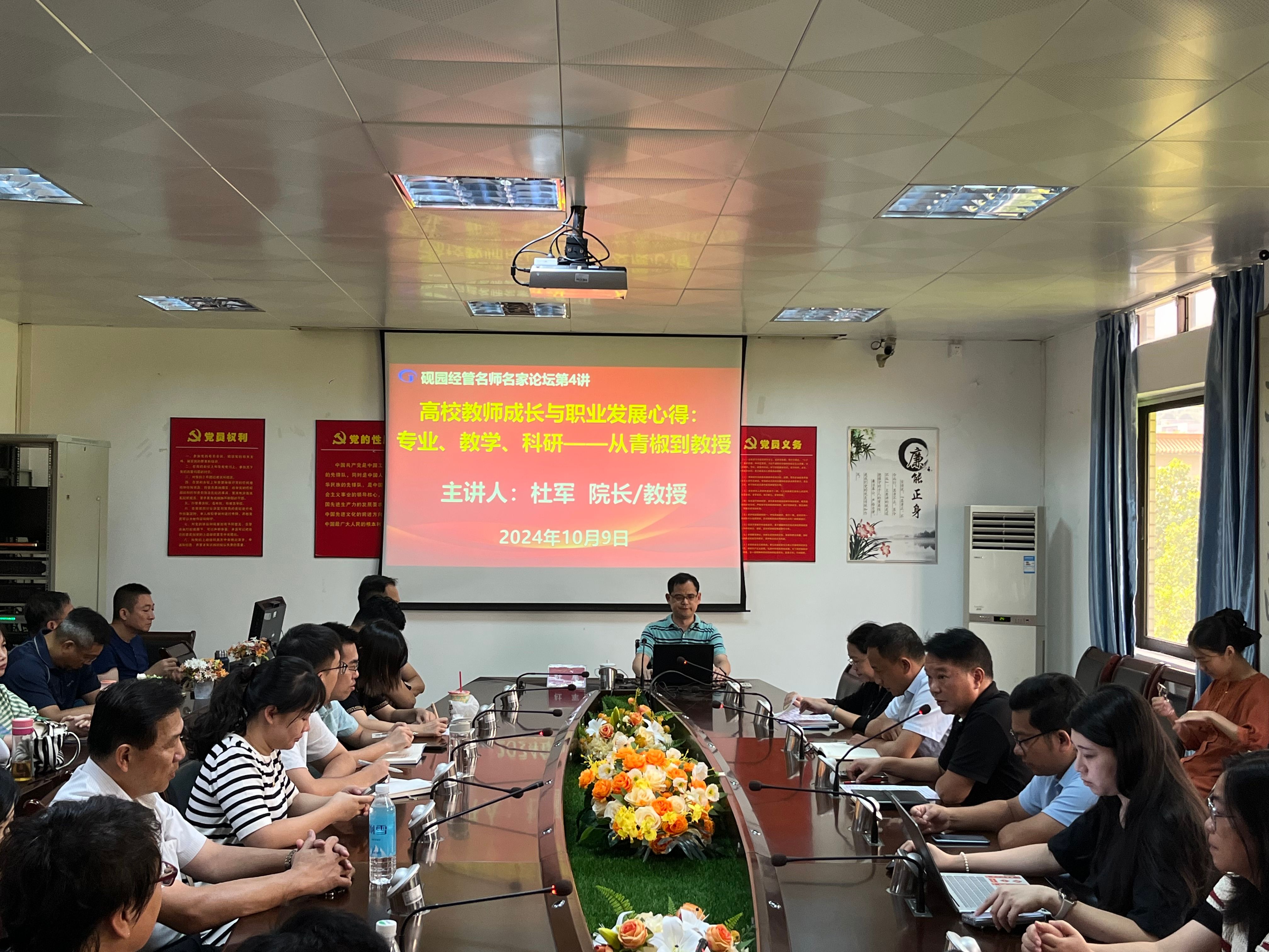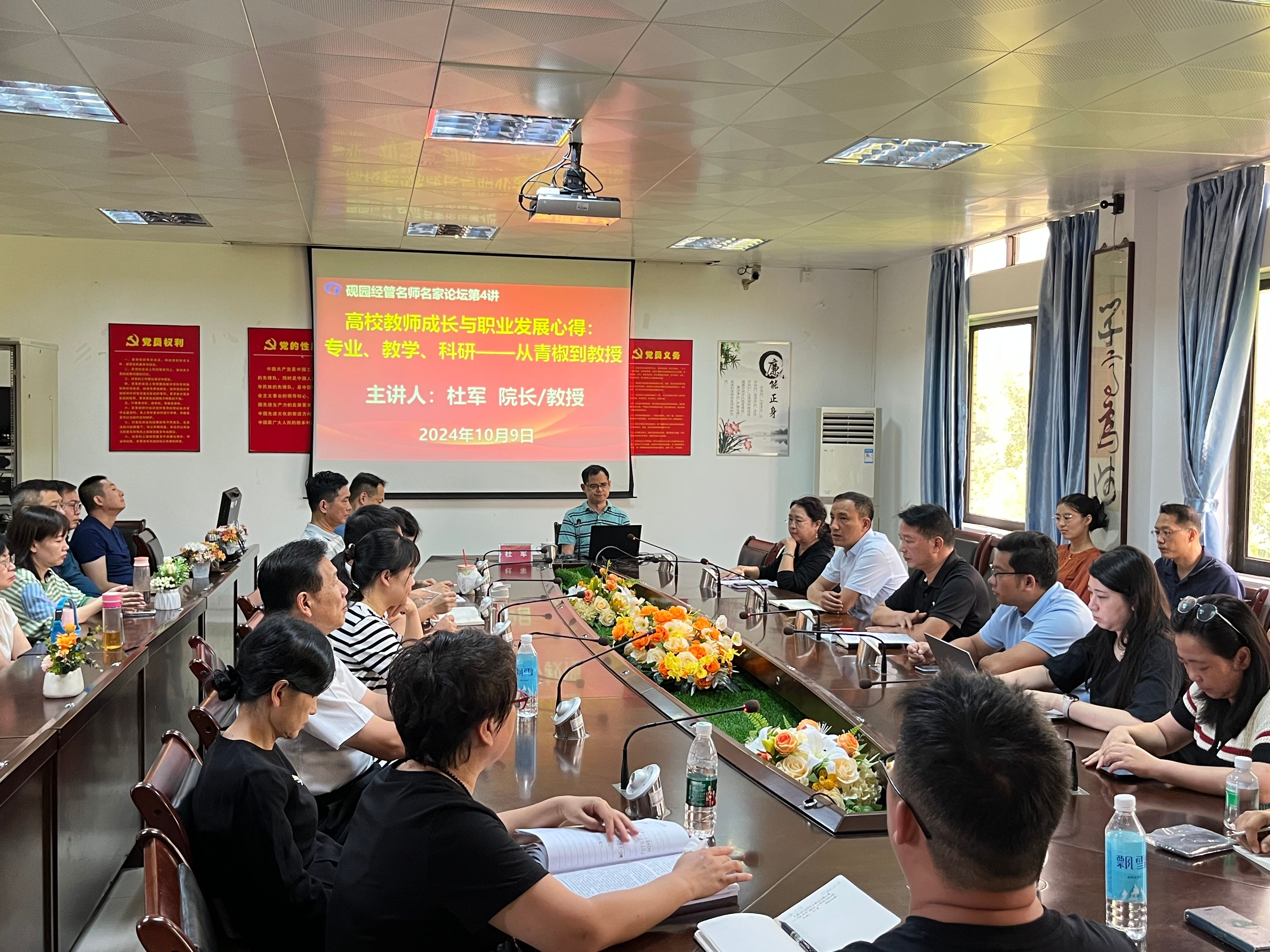 2024年10月9日下午,bevictor伟德官网“砚园经管名师名家论坛(第4讲)”在公司501会议室成功举办。根据公司2024年师德建设主题教育月工作部署和论坛年度安排,为全面提升全体教师爱岗敬业、进取作为、争先创优的行动力和精气神,持续推动公司公司产品和科学研究高质量发展,公司特邀广东海洋大学管理公司经理杜军教授来校作题为《高校教师成长与职业发展心得:专业、教学、科研——从青椒到教授》的专题报告会。公司党委书记梁标、经理李华军以及40名中青年骨干教师参加了报告会,会议由梁标主持。