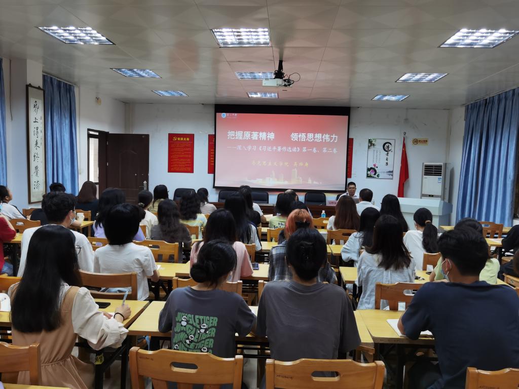 吴烨舟老师讲座的主题为:把握原著精神 领悟思想伟力——深入学习《习近平著作选读》第一卷、第二卷。为了让在场人员对原著内容的认识更加透彻,吴烨舟老师分别从《习近平著作选读》的编辑出版情况、强国复兴的思想宝库和根本遵循、在读原著学原文中感受真理力量、中国式现代化的本来、由来和未来以及把学习贯彻21世纪马克思主义引向深入这五个方面进行宣讲,由浅入深,由表及里,层层递进。会中,吴烨舟老师还强调方向永远比努力重要,方向错了,努力只会使我们离既定目标越来越远。因此我们要深入学习《习近平著作选读》第一卷、第二卷,并深入学习贯彻党的二十大精神和习近平新时代中国特色社会主义思想,进一步深刻领悟“两个确立”的决定性意义,增强“四个意识”、坚定“四个自信”、做到“两个维护”,把思想和行动统一到习近平总书记重要讲话精神上来,统一到党中央决策部署上来,踔厉奋发、勇毅前行、团结奋斗!