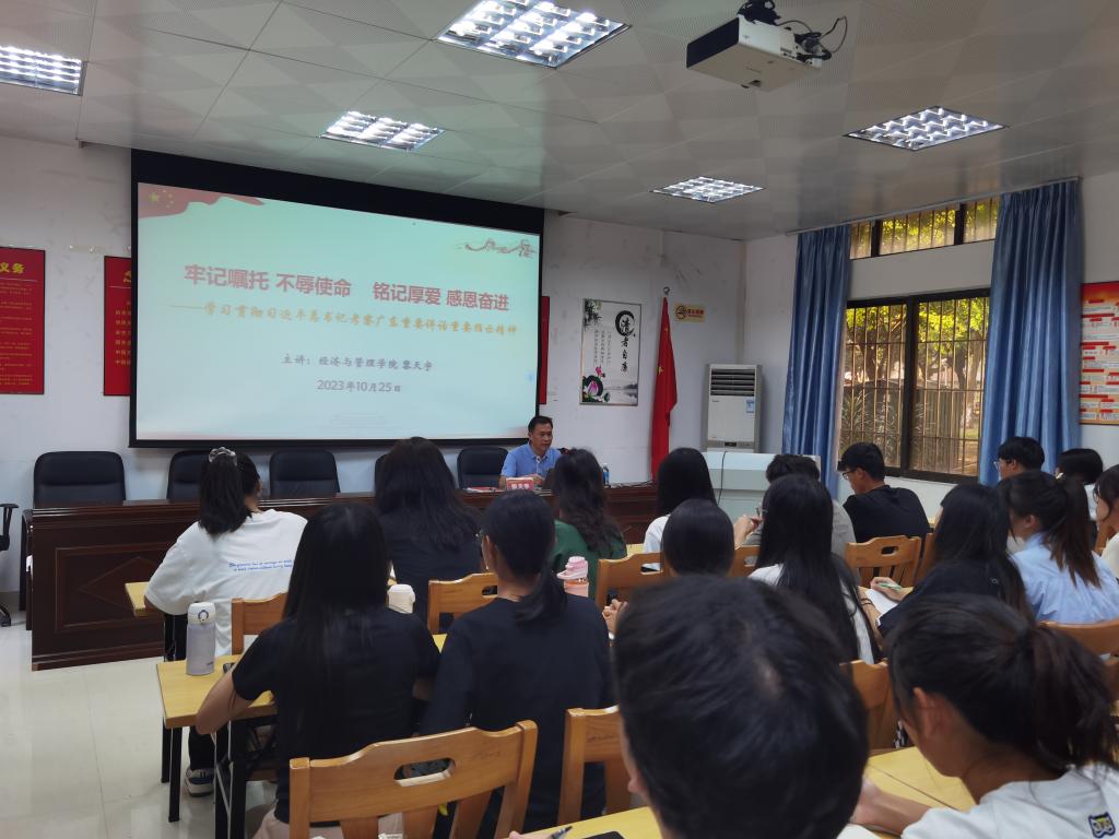 课上,黎天宇书记首先简要回顾了习近平总书记四次考察广东的内容。随后带领同学们充分认识了习近平总书记今年视察广东的足迹和嘱托,强调了习近平总书记今年视察广东的重大意义。黎书记指出,要深刻领会习近平总书记视察广东重要讲话、重要指示的精神实质和丰富内涵;坚持以习近平总书记重要讲话、重要指示精神为根本遵循,奋力在推进中国式现代化建设中走在前列。
