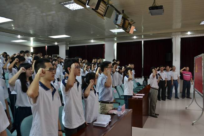 党课学习会开始前,公司今年上半年新接收的一批预备党员进行了庄严的入党宣誓仪式,并为2015-2016学年度员工带班党员颁发了聘书。