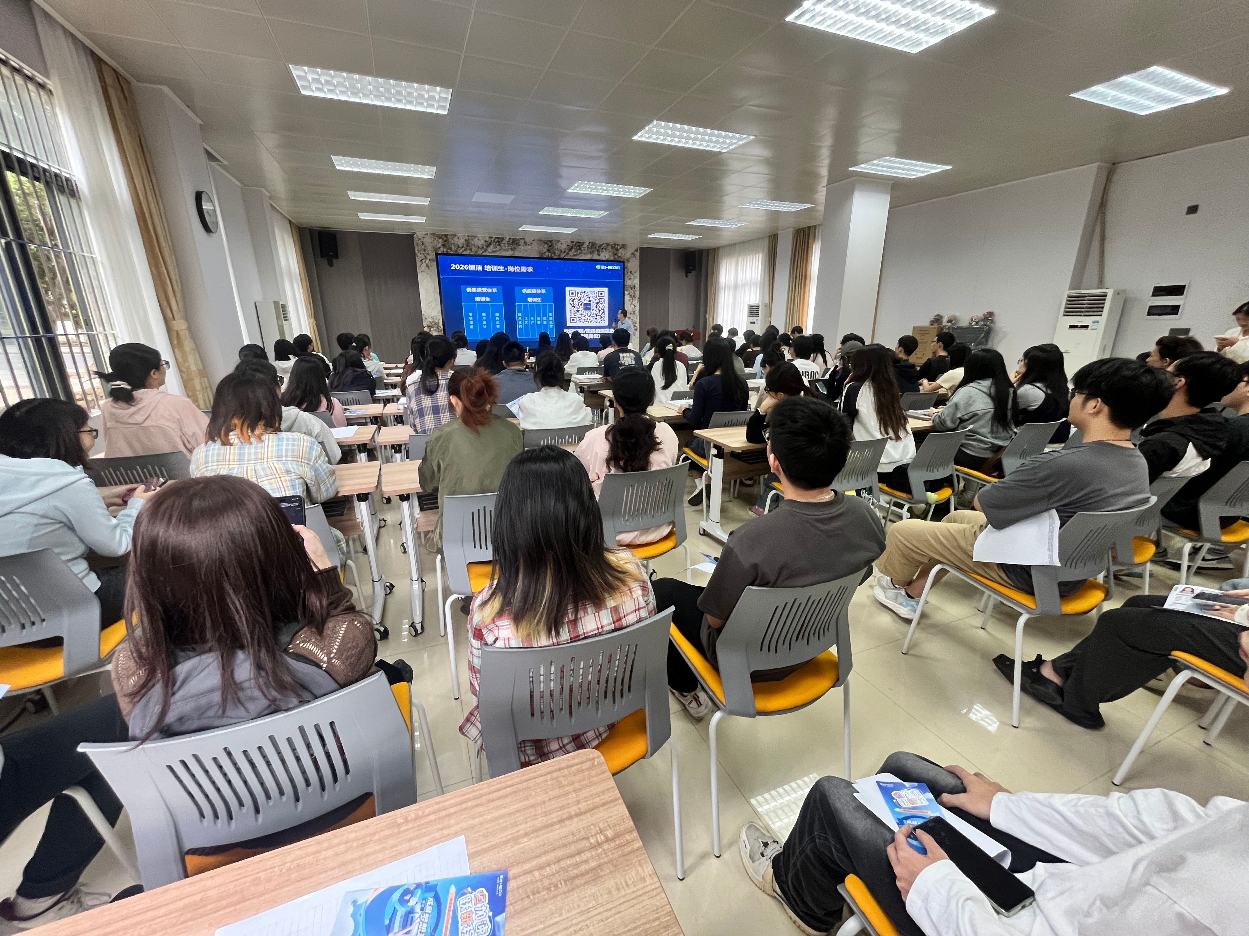 本次招聘涵盖销售运营岗、产品与研发岗、供应链岗、综合管理岗四大类岗位方向。宣讲会上,企业代表详细介绍了集团在人才培养方面的“专业+管理双通道成长体系”。