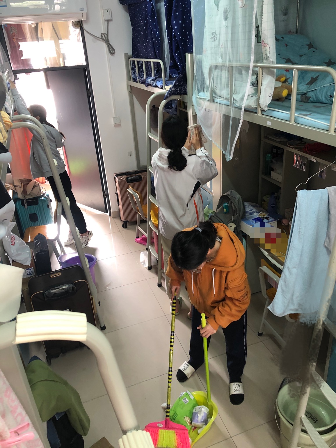 公司组织员工返校后首先开展宿舍清洁工作,清扫宿舍桌面积尘、打包剩余垃圾、铲除阳台周边等蚊虫遗留物,整顿个人内务、注意消毒卫生、宿舍勤通风;公司领导及辅导员深入员工宿舍检验清洁工作成果,与员工强调疫情防控重要性,目前仍不可掉以轻心;班主任组织班级成员开展主题班会,进一步加强宿舍卫生及消防宣传工作,督促培养员工养成良好的卫生生活习惯,营造健康安全的宿舍环境。