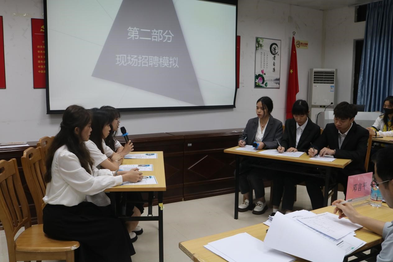 比赛分两个环节,分别为PPT演讲和招聘现场模拟。在PPT演讲中,十一组选手根据抽签顺序依次上台,通过对PPT讲解展示团队策划的招聘方案,评委老师针对选手的招聘方案、PPT内容作出细致点评,并向选手提问。在现场模拟招聘环节,由选手扮演面试官和面试者进行招聘模拟,评委综合选手的形象举止、专业职能、以及沟通能力进行打分。经过几个小时的激烈比拼,获奖队伍诞生,由李希老师和邓言平老师为获奖队伍颁发奖状。