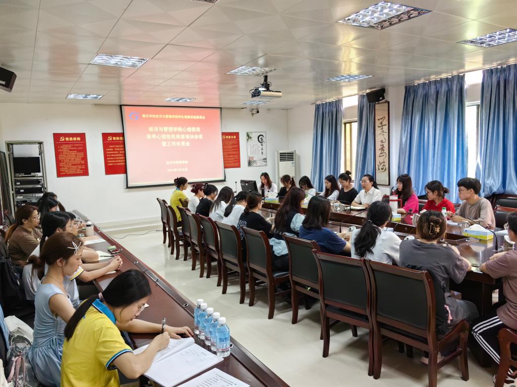 【bevictor伟德官网 讯】为进一步发挥班级心理委员队伍在心理危机预警和心理健康宣教中的重要作用,提升班级心理委员心理健康知识水平与专业技能,bevictor伟德官网于2023年9月25日和10月12日分别在主校区bevictor伟德官网办公楼501室和星湖校区15栋1楼会议室召开心理委员秋季心理危机排查培训会议暨工作布置会。全体心理委员及健促工作人员出席会议,会议由心理辅导站站长叶青主持。