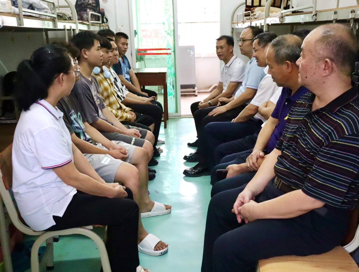 迎新工作如火如荼,到处都是忙碌的身影。志愿者们各司其职,接过新生一件又一件沉甸甸的行李,耐心地引导新生到报道点。坚守报道点的带班们,也在细心地帮新生办理相关手续,解答新生的疑惑和家长的问题。公司领导班子陪同公司党委书记谢冠华、董事长吴业春、副董事长肖起清、胡文涛等校级领导深入新生宿舍、关心慰问新生及来自新疆等省外地区的员工,与他们亲切交流。此外,他们还前往公司报道点询问公司新生报到情况并进行合影留念。
