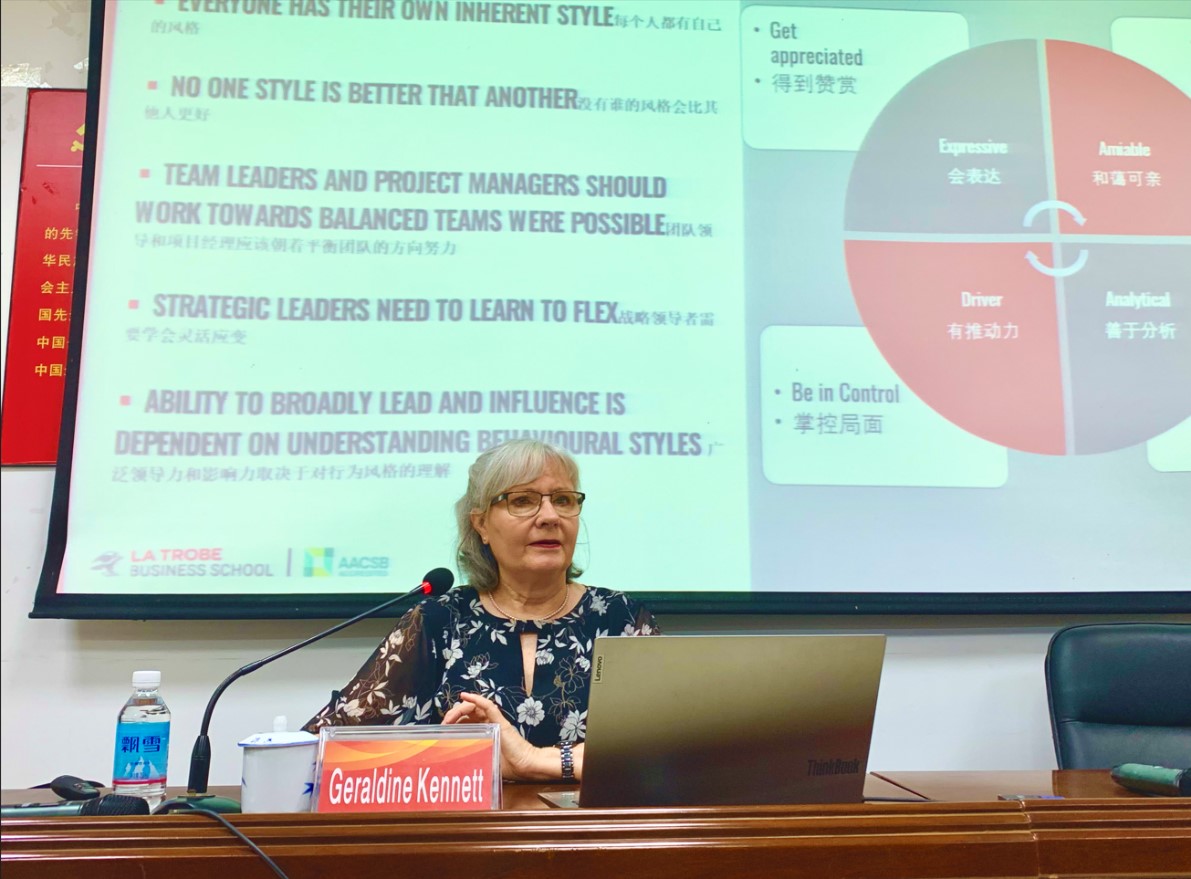 Kennett博士与同学们深入探讨了如何能够通过有效的沟通积极地影响他人以达成预期或超预期的结果,还通过问卷的形式让同学们进行了现场测试,并根据测试结果进行分组讨论,同学们在讨论过程中积极与Kennett博士就不同类型性格的社交风格进行互动交流。本次讲座的顺利进行,不仅使国际经济与贸易的同学锻炼了外语能力,还学习到了不同社交风格的沟通策略,以及如何灵活准确地传达信息,更好地与他人建立价值关系。