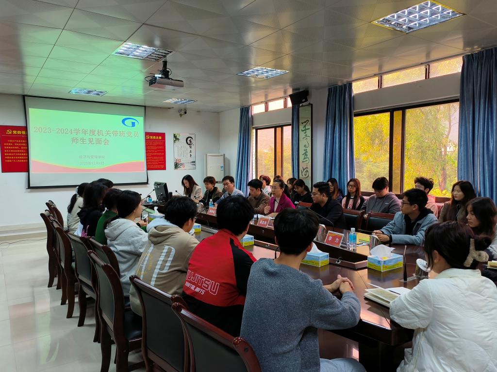 【bevictor伟德官网 讯】为加强党员服务管理模式,增强党员联系服务基层和育人的有效途径,bevictor伟德官网围绕“党建育才工程”,于2023年12月6日下午16:30在办公楼501室召开2023-2024学年度机关带班党员师生见面会。会议由年级辅导员叶青主持,党委副书记颜春萍、班主任王一和李力,机关带班党员周友良、蔡树培、肖文标及22国贸1班、22投资1班、22人资2班班委46人参加。
