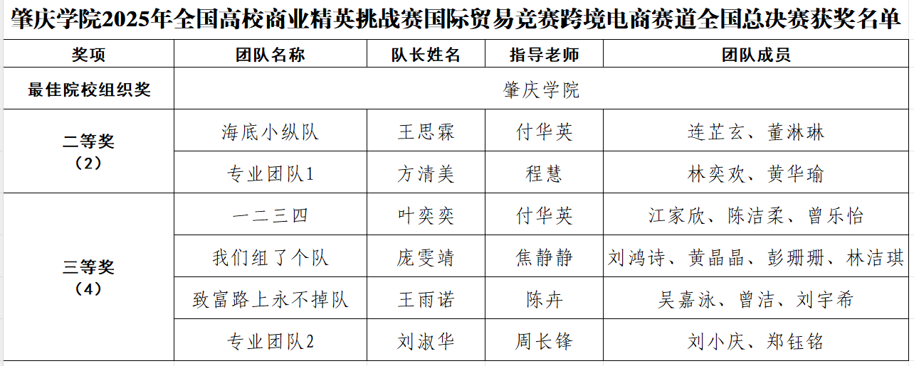 恭喜周长锋老师、付华英老师、程慧老师、焦静静老师、陈卉老师带领员工获得全国高校商业精英挑战赛国际贸易竞赛跨境电商赛道全国总决赛奖项。