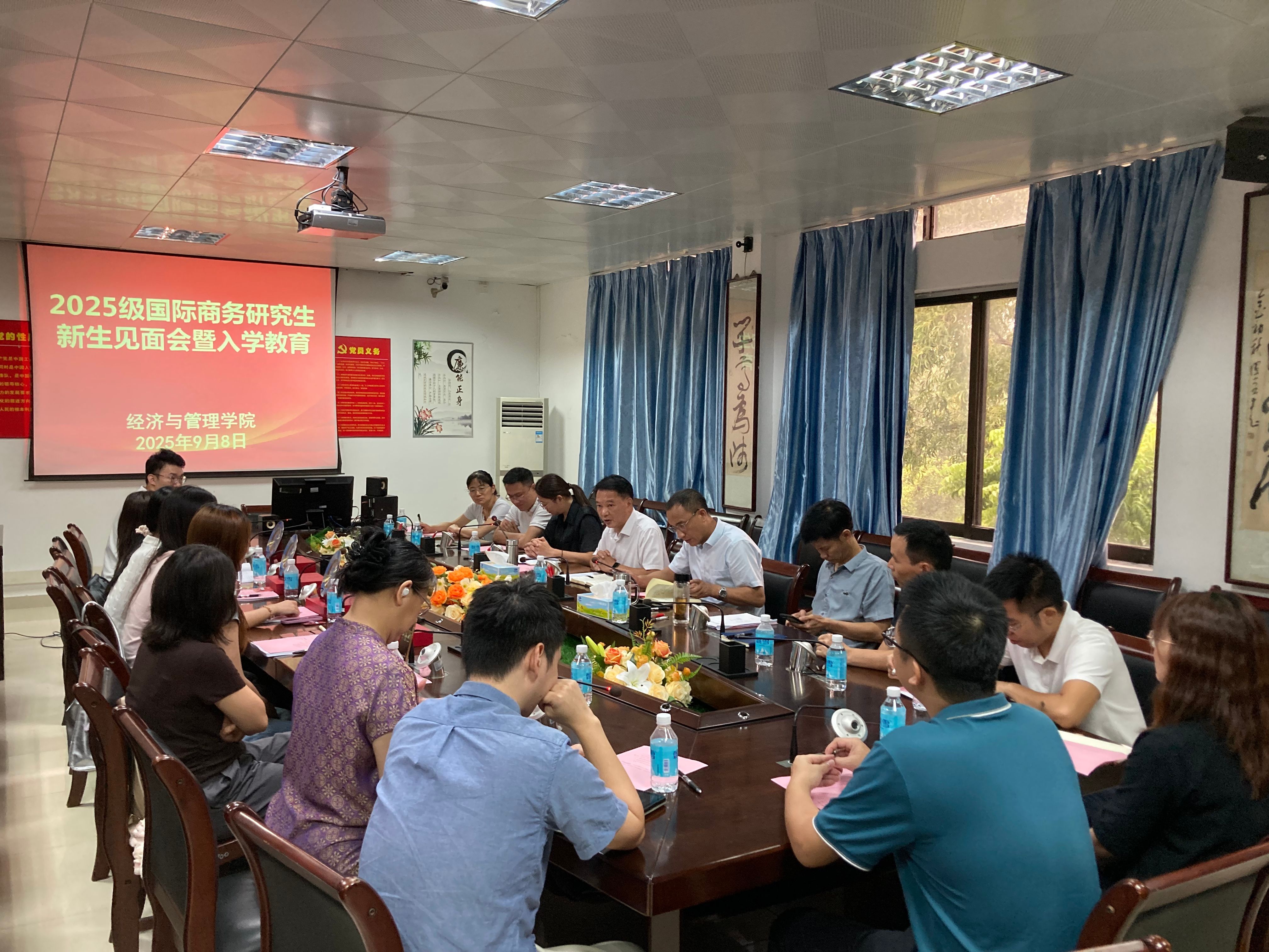 本网讯  9月8日,公司在501会议室举行2025级国际商务硕士研究生见面会暨入学教育,公司全体领导班子、硕士生导师、授课教师、管理教辅人员以及首届研究生齐聚一堂见面交流。见面会由党委副书记巫燕娜主持。
